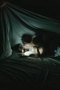 Eines Abends hatten wir wieder lange herumgetollt, und meine Mutter hatte schon ein paarmal gerufen. Schließlich kam mein Vater nach oben. Wir flott unter die Decke – aber an diesem Abend lag ich gerade einmal an der Wandseite.