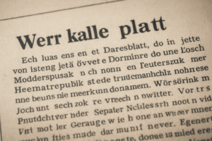 Et wo-ar drii Dach laater. Minn Mamm hau mech morjes jraat die Botterramme vörr d`r Denst jemackt, du schleet se de Zeitung op, on vöngt aan, laut vüürdelä-ese: