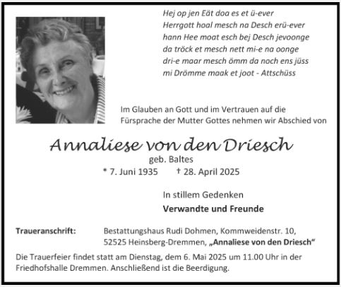 dröm han esch, wat se sue gesoar,